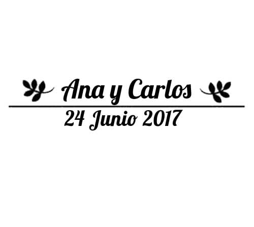Para personalizar nuestros sellos solo necesitas proporcionarnos los nombres a poner en el sello y la fecha de la boda, y te enviaremos una plantilla de prueba para tu aprobación. De esta manera, puedes tener la seguridad de que tus recuerdos de boda serán únicos y personalizados a tu gusto.